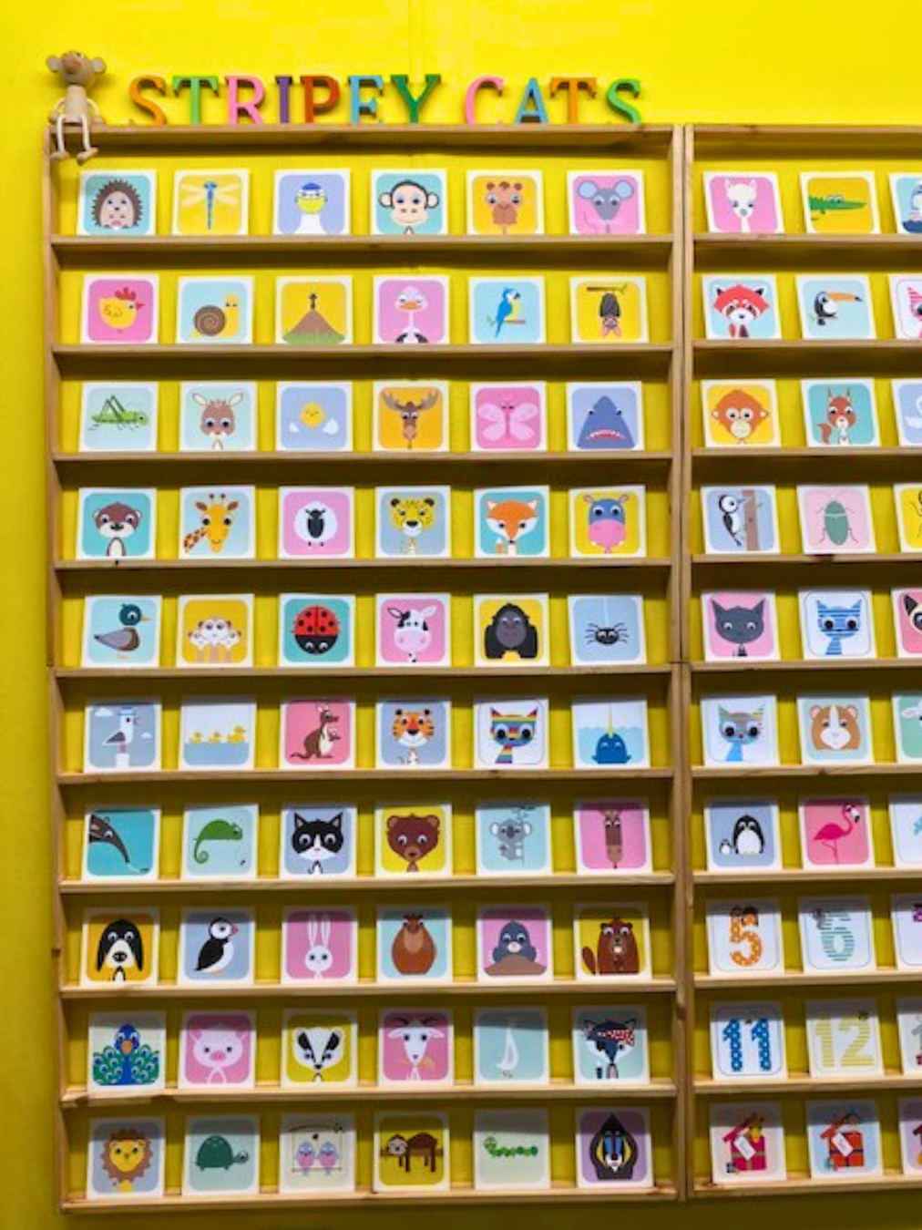 Googly-eyed foxes, curious cats and perplexed, hanging bats — every design carried its own fun, but delicate personality. Cards spilled through the space in a collection of colour and expression. There must have been a hundred creatures, each asking for their own little backstory.
